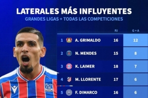 體育資訊11月25日訊 德國(guó)轉(zhuǎn)會(huì)市場(chǎng)統(tǒng)計(jì)了本賽季五大聯(lián)賽邊衛(wèi)的參與進(jìn)球數(shù)量,并列出榜單,格里馬爾多參與12球居首,努諾·門(mén)德斯參與8球次席。