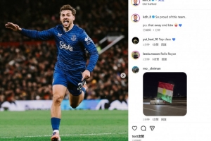 霍爾也在賽后通過(guò)社媒曬出自己的慶祝照,并配文:“為這支球隊(duì)感到無(wú)比自豪..順帶一提,我們的客場(chǎng)球迷(真是絕了)??”