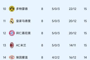 而兩隊(duì)的排名最終靠的是客場勝場數(shù)決定,皇馬4個(gè)客場只有2勝,但是拜仁客場僅1勝。