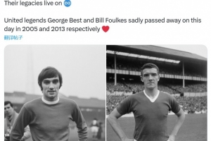 今天,曼聯(lián)官方紀(jì)念貝斯特和比爾·??怂?,并配文: