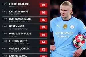 體育資訊1月31日訊 歐冠聯(lián)賽階段已經(jīng)正式收官,Squawka統(tǒng)計(jì)了聯(lián)賽階段所有球員射正次數(shù)的排行榜,其中,哈蘭德和姆巴佩排在前二。