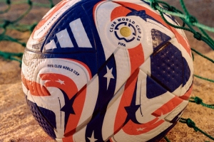 這款足球加入了美國(guó)的傳統(tǒng)藍(lán)色、紅色、白色和星星的元素。并有Club World Cup 2025的標(biāo)識(shí)。