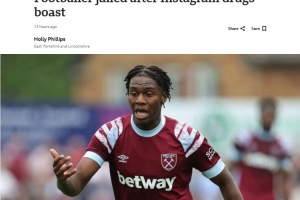 體育資訊12月9日訊 BBC報(bào)道,一名曾在Instagram上吹噓販毒的前西漢姆球員已被判入獄。