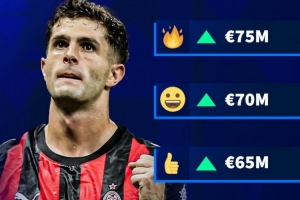 德國轉(zhuǎn)會市場預(yù)熱普利西奇的身價變化,最高可能達(dá)到7500萬歐元,最低保持6000萬歐元。