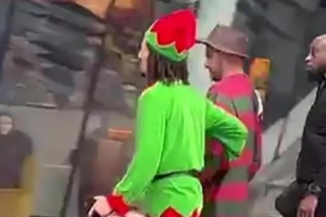沃克身著經(jīng)典電影角色弗萊迪·克魯格服裝,被拍到在街頭腳步不穩(wěn),需要由裝扮成“精靈”的22歲隊友漢尼拔以及一名安保人員共同攙扶,才能返回下榻酒店。