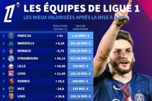 德轉(zhuǎn)列法甲各隊(duì)身價(jià)榜:歐元