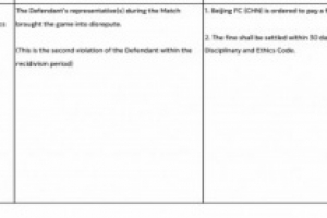 亞足聯(lián)官方表示,國安的行為損害比賽聲譽,違反亞足聯(lián)紀律和道德準則第50.1條,這是國安第二次違規(guī),對國安處以6250美元罰款,罰款應(yīng)自本決定送達之日起30日內(nèi)支付。