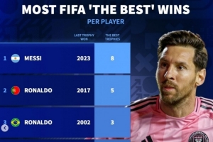 FIFA年度最佳球員獲獎次數(shù):