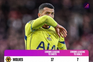 英超失誤導(dǎo)致丟球榜:狼隊(duì)7球居首,熱刺、桑德蘭、森林5球次席
