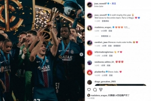 他也在賽后通過社媒曬出自己的捧杯照,并配文:“今年的第六座獎(jiǎng)杯??全隊(duì)做得非常棒!巴黎充滿魔力????”