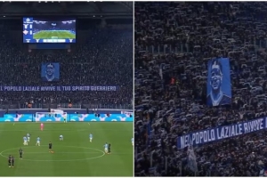 球迷們拉出的橫幅寫道:“拉齊奧人們的心中,你戰(zhàn)士般的靈魂永存。”