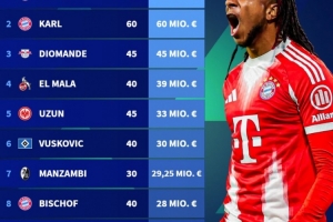 體育資訊12月26日訊 德國轉(zhuǎn)會(huì)市場(chǎng)盤點(diǎn)了2025年德甲身價(jià)漲幅榜,拜仁兩將奧利塞、倫納特·卡爾分別上漲6500萬歐和6000萬歐位居前二。