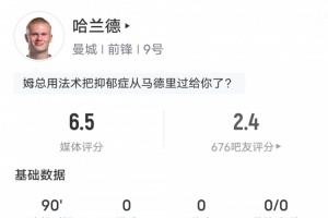 體育資訊12月26日訊?英超聯(lián)賽第18輪,曼城1-1戰(zhàn)平埃弗頓。哈蘭德首發(fā)出戰(zhàn),罰丟1粒點(diǎn)球,送出2次關(guān)鍵傳球,評(píng)分6.5。