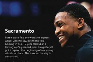 致球迷們,你們理應(yīng)得到最好的。我本想在這里結(jié)束職業(yè)生涯,從未料到會(huì)以這樣的方式離開,但我會(huì)永遠(yuǎn)感激你們的支持。感謝你們給予我和我家人的愛。薩克拉門托在我心中永遠(yuǎn)有一個(gè)特殊的位置。
