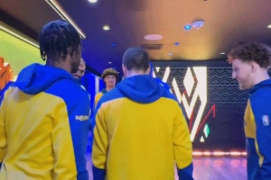 賽前勇士球員圍成一團(tuán),施羅德站在中央“嬌羞”地拍打每個隊友的小胸胸,然后大家笑嘻嘻地跑向球場。