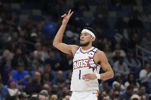 此役,布克出戰(zhàn)46分半,投籃18中9,三分8中3,罰球14中13,得到34分3籃板4助攻。