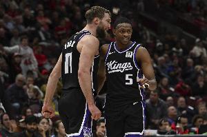 今天,國王中鋒小薩博尼斯曬出了自己和??怂沟暮险眨约胞溈藙诹趾驮S爾特的照片,并寫道:“情誼大于籃球???!?/p>