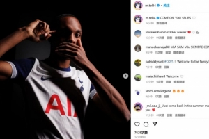 特爾在今日通過社媒曬出自己的定妝照,并配文:“熱刺加油?。–OYS)”。據(jù)悉列維專程飛赴慕尼黑游說這位法國小將,并且為租借5個(gè)月而支付了高達(dá)1000萬歐租借費(fèi)。