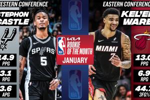 體育資訊02月05日訊 NBA官方公布了1月月度最佳新秀獲得者,分別是西部的馬刺后衛(wèi)卡斯爾、東部的熱火中鋒韋爾。