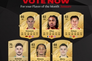 體育資訊2月5日訊 德甲官方公布了一月聯(lián)賽最佳球員候選名單,其中,維爾茨、基米希、哈維-西蒙斯、奧利賽等人入選。