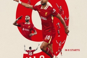 加克波在近8場首發(fā)出戰(zhàn)的主場比賽中,已經(jīng)打進(jìn)9粒進(jìn)球,利物浦官推也曬出加克波海報(bào),配文寫道:“加克波在安菲爾德狀態(tài)火熱!”