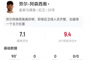 體育資訊2月9日訊 皇馬在本輪西甲1-1戰(zhàn)平馬競(jìng),小將勞爾-阿森西奧本場(chǎng)數(shù)據(jù)如下: