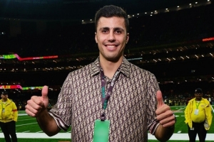曼城中場、金球獎得主羅德里來到現(xiàn)場,觀看超級碗比賽。根據(jù)此前媒體的報道,由于羅德里仍在養(yǎng)傷階段,曼城俱樂部派出了一名理療師陪同他前往美國。