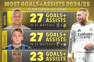 體育資訊2月11日訊?日前,德國轉(zhuǎn)會市場統(tǒng)計(jì)了本賽季新援參與進(jìn)球、進(jìn)球排行,姆巴佩均位列第一。