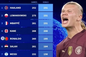 體育資訊2月11日訊 《轉(zhuǎn)會(huì)市場(chǎng)》統(tǒng)計(jì)了近5年各項(xiàng)賽事總進(jìn)球情況,三人并列居首。