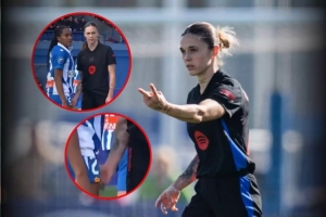 女足西甲第18輪,巴薩女足2-0戰(zhàn)勝西班牙人女足。比賽第15分鐘,巴薩女足后衛(wèi)、西班牙女足國(guó)腳萊昂與哥倫比亞女足國(guó)腳卡拉卡斯發(fā)生肢體接觸。比賽畫(huà)面顯示,萊昂在對(duì)抗中用右手觸摸了卡拉卡斯的下體。