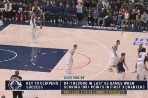 唯一失利是2023年2月25日,快船雙加時(shí)輸給尼克斯。