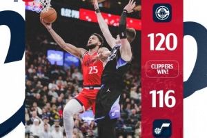 體育資訊2月14日訊?NBA常規(guī)賽,快船加時(shí)120-116險(xiǎn)勝爵士。