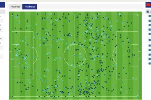 國青(深藍(lán))半場12次攻入對手禁區(qū),吉爾吉斯斯坦在國青禁區(qū)內(nèi)僅3次觸球