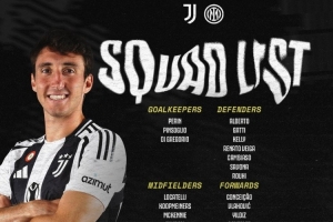 體育資訊2月16日訊 北京時間明天凌晨3點45分,尤文將在意甲第25輪比賽中主場對陣國米。尤文公布了此役的球員名單,坎比亞索復出,道格拉斯-路易斯、卡巴爾、米利克、布雷默、卡盧盧缺席。