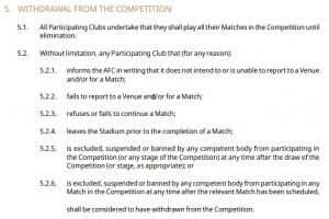 根據(jù)公告中提到的亞足聯(lián)競賽規(guī)則5.2,以下行為應(yīng)被視為退出亞冠精英聯(lián)賽: