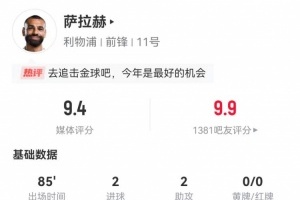 體育資訊12月23日訊 利物浦在本輪英超6-3領先熱刺,薩拉赫本場數(shù)據(jù)如下: