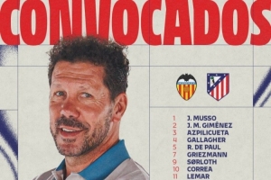 體育資訊2月22日訊 本周日凌晨西甲第25輪,馬競客場對陣瓦倫西亞。賽前,馬競公布了本場比賽大名單,上輪染紅的巴里奧斯停賽缺席,科克因傷缺席。