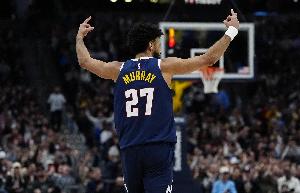 目前,掘金9連勝,37勝19負(fù)排在西部第二位。