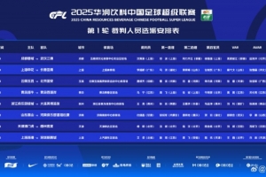 體育資訊2月22日訊 中國足協(xié)公布了新賽季中超首輪裁判人員選派名單,馬寧將執(zhí)法海牛與西海岸的青島德比。
