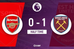 上半場傷停補時2分鐘,半場結(jié)束,阿森納暫0-1西漢姆。