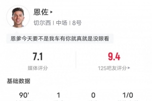 恩佐本場(chǎng)比賽數(shù)據(jù)如下: