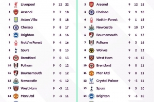 體育資訊12月28日訊 英超官方社交媒體曬出了英超本賽季前9輪積分和近9輪積分的對(duì)比,曼城從榜首一下子來到了降級(jí)區(qū),表現(xiàn)堪稱天壤之別。
