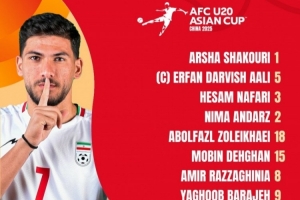 伊朗U20首發(fā):1-阿爾沙-沙庫里、18-阿博法茲-佐雷哈伊、3-希薩姆-納法里、5-埃爾凡-達(dá)爾維沙利、4-尼瑪-安達(dá)日、11-馬漢-薩德吉、15-莫賓-德甘、8-阿米爾穆罕默德-拉扎吉尼亞、9-雅古-布巴拉吉、7-埃斯梅爾-格霍利扎德、10-雷薩-甘迪普爾
