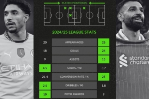 體育資訊2月23日訊 本輪英超將迎來曼城與利物浦的焦點(diǎn)對(duì)話,也是兩位埃及前鋒薩拉赫、馬爾穆什首次在英超交鋒,數(shù)據(jù)網(wǎng)站W(wǎng)hoscored對(duì)比了本賽季兩人在聯(lián)賽中的數(shù)據(jù),具體如下: