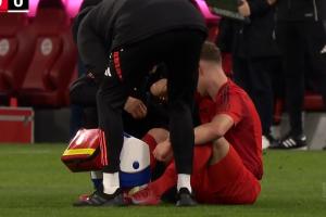 體育資訊02月24日訊 拜仁vs法蘭克福第43分鐘,基米希坐在地上無法堅持!格雷茨卡登場!