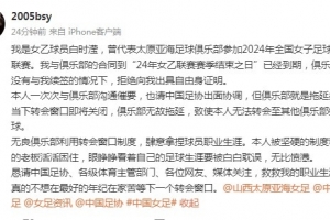 體育資訊2月26日訊 女乙球員白時(shí)瀅在社媒透露,山西太原亞海足球俱樂(lè)部在其合同到期的情況下,拒絕出具自由身證明。