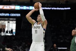 末節(jié)還剩27秒時(shí)(雄鹿95比98落后),利拉德接球之后字母哥以及大洛擋拆,之后大洛接球出手超遠(yuǎn)三分,球沒有命中。