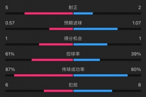 兩隊上半場主要數(shù)據(jù)↓