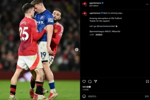 體育資訊2月27日訊 本輪英超比賽中,十人作戰(zhàn)的曼聯(lián)3-2逆轉(zhuǎn)擊敗伊普斯維奇。賽后,烏加特更新社媒慶祝勝利。