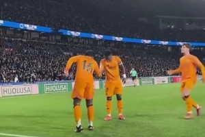 隨后他進(jìn)行了滑跪,在同胞維尼修斯趕來(lái)后,兩人握手一起慶祝了這粒進(jìn)球。